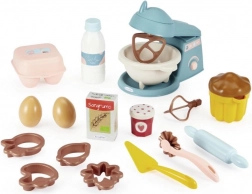 Ta bogato opremljen set za male slaščičarje razvija domišljijo, fino motoriko in odnos do kuhanja. Otroci lahko preizkusijo pripravo peciva z varnimi otroškimi orodji in realističnimi dodatki. Del kompleta je funkcionalni otroški mešalnik z dvema zamenljivima nastavkoma ter številni praktični pripomočki za peko.
