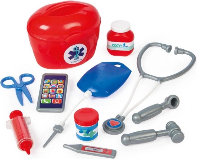 Komplet vsebuje kovček in realistične dodatke, kot so stetoskop, injekcija, termometer, škarje in drugi elementi za pregled pacienta. Lahka konstrukcija s težo le 1,085 kg zagotavlja udobno premikanje po stanovanju in otroški sobi.