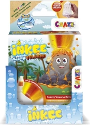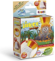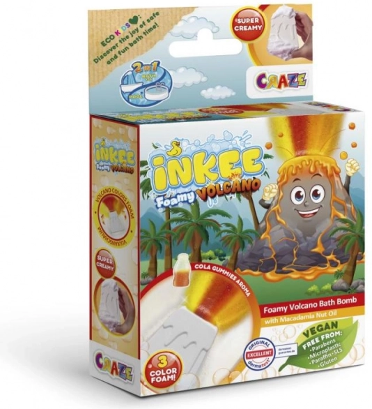 INKEE Foamy Volcano je velika 110 g šumeča kopalna bomba v obliki vulkana, ki po odlaganju v vodo sprosti curek rumene, rdeče in oranžne ter ustvari osupljiv učinek erupcije. Med raztapljanjem pusti vodo čudovito oranžno in napolni kopalnico s kombinacijo vonjev jagode in cola gummies.
