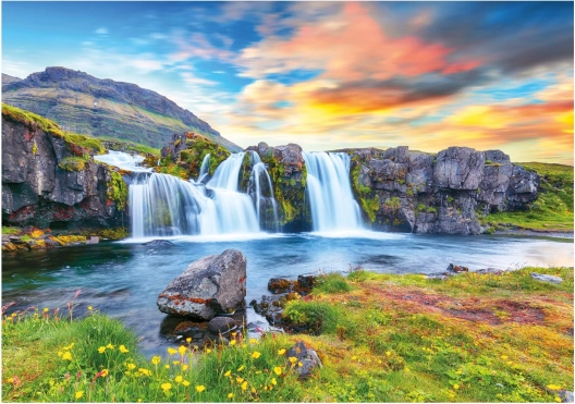 Živa pokrajina s slapom in barvitim nebom bo razveselila ljubitelje narave ter dodala sestavljanju pridih avanture.