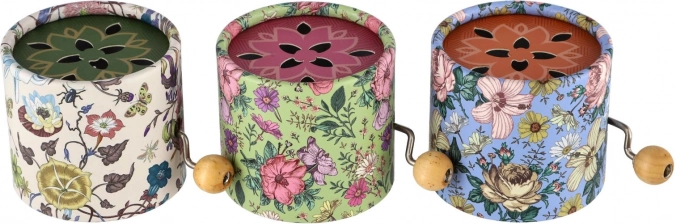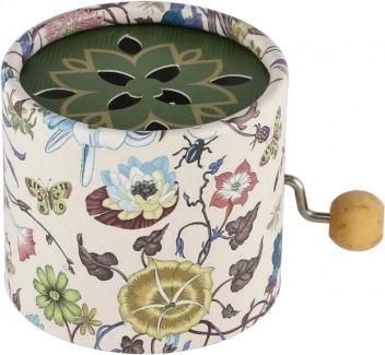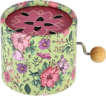 Ta ročna glasbena skrinjica v kovinski škatlici s papirnatim potiskom in cvetličnim pokrovčkom predvaja melodijo z enostavnim vrtenjem ročice. Zahvaljujoč kompaktnim meram 9 × 6 × 9 cm lepo sede v dlan in zlahka gre v torbo ali na polico. Idealna je za trenutke miru, razvoj čutov in kot prijeten dodatek otroški sobi.