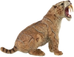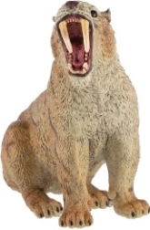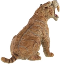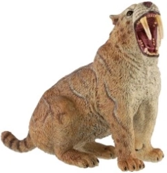 Odprt gobec in dolgi podočniki poudarjajo značaj prazgodovinskega plenilca. Teksturiran kožuh in naravna obarvanost figurici zagotavljata verodostojen videz.