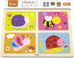 Komplet vsebuje štiri ločene sestavljanke z barvitimi ilustracijami živali, primernimi za otroke. Vsaka slika je sestavljena iz štirih delov, kar skupaj pomeni 16 delov. Sestavljanke so namenjene otrokom od 18 mesecev in podpirajo njihovo fino motoriko, logično mišljenje in kreativnost.