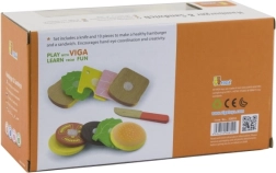 Ta VIGA lesena set hamburgerja in sendviča je idealna za majhne otroke, ki radi posnemajo odrasle pri kuhanju. Barvne in varne lesene komponente, kot so štručke, solata, paradižnik in sir, omogočajo neomejeno igro in ustvarjalnost. Igrača pomaga v razvoju:
