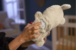 Zajček ritmično ziba glavico in posnema zehanje, kar pomaga dojenčku, da se sprosti in hitreje zaspi.