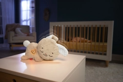 Prenosni plišasti zajček Fisher-Price pomaga dojenčkom mirno zaspati s pomirjujočo glasbo in zvoki narave, mehko pridušeno svetlobo ter nežnim zibanjem glavice. Ponuja 5 zvočnih možnosti in do 30 minut predvajanja, je prijetno mehak in primeren za otroke od rojstva (0+).