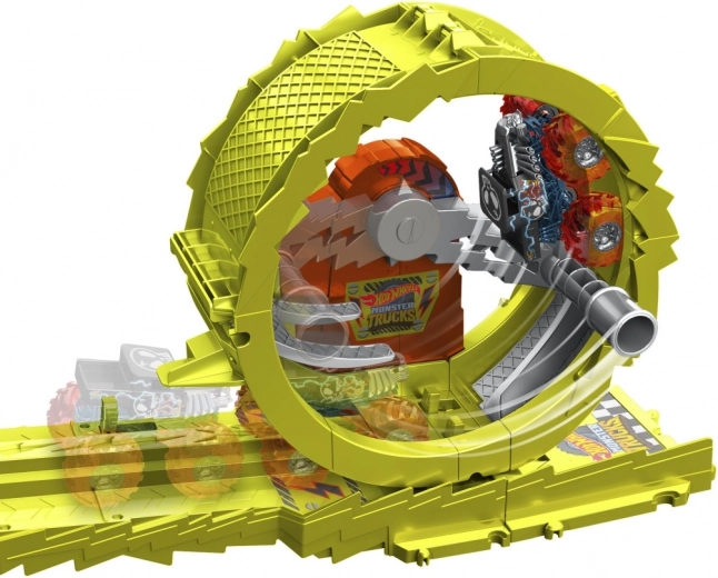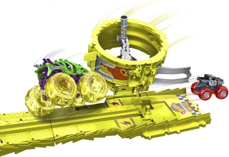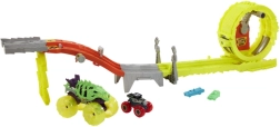 Ta set je ustvarjen za hitre dirke, kreativno igro in trening koordinacije roka–oko. Dva priložena zmečkana avtomobila zagotavljata še več destruktivne zabave in pristne nesreče. Odlična izbira za male oboževalce Hot Wheels Monster Trucks.