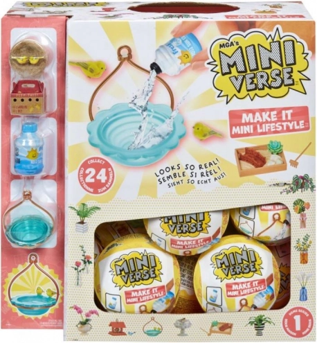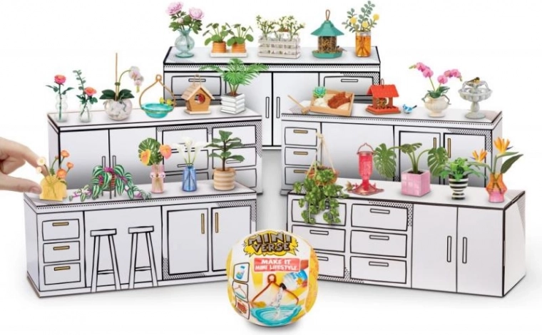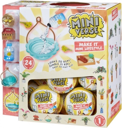 MGA Miniverse – Mini sobne dekoracije, serija 1B, prinašajo ustvarjalno izkušnjo v žepni velikosti. Vsak set vsebuje presenečenja v obliki različnih dodatkov in materialov, s katerimi sestaviš lastno stilno mini dekoracijo – od rastlinic in fontan do drobnih vrtnih ali domačih scen. Preprosto sestavi, zalij s smolo in pusti, da se utrdi.