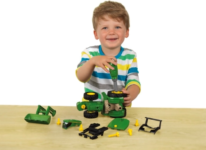Ta zeleno-rumen traktor s sprednjim nakladalnikom bo razveselil male graditelje z možnostjo razstavljanja in ponovnega sestavljanja s priloženim izvijačem. Otroci zlahka vadijo logiko, potrpežljivost in natančnost pri rokovanju z deli, kolesi in vijaki.