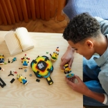 Ko zavrtite sedečega Mela, se ostali Minioni začnejo vrteti okoli Gruja. Set lahko razširite z drugimi seti iz kolekcije Jaz, baraba 4. Avtentični dodatki, kot so marakasi, megafon in ukulela, še obogatijo igro in otroško domišljijo.