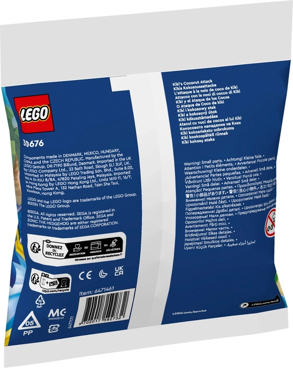 Majhen, a poln akcije! Ta polybag iz serije LEGO Sonic predstavlja sovražnika Kiki (Badnik), ki ga je preprosto sestaviti in se takoj podati v spopade. Zahvaljujoč členjenim delom in detajlom lahko ustvarjate dinamične poze ter poustvarjate znane igralne trenutke s kokosovim projektilnim napadom.