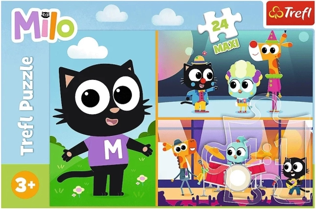 Ta otroška sestavljanka z motivom priljubljenega mucka Mila je odlična izbira za prvo sestavljanko. 24 izredno velikih koščkov je enostavno držati tudi najmlajšim, razvija fino motoriko, potrpežljivost in logično mišljenje. Po sestavljanju nastane velika, barvita slika velikosti 60 × 40 cm, ki jo bodo otroci vzljubili.