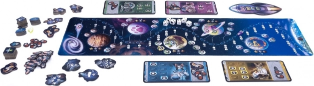 - Usodo vsake odprave določijo kocke, ki jih vrže poveljnik, nato pa se odloči, katere bo uporabil za premikanje po igralni plošči. Po vsakem uspešnem letu lahko sklenete, da bo vaš mačji astronavt izstopil iz rakete in pristal na določenem mesecu ali planetu. Na ta način zbirate točke, bonuse in izpolnjujete cilje.