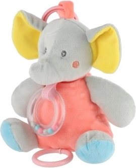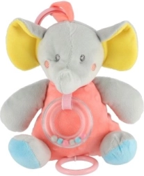 Glasbeni plišasti slon bo razveselil vsakega dojenčka z nežnim dotikom in prijetnimi barvami. Zahvaljujoč praktični sponki ali obroču ga zlahka pritrdite na voziček, avtosedež ali posteljico, zato bo priljubljeni prijatelj vedno pri roki. Mehke teksture in kontrastni detajli spodbujajo zaznavanje in razvoj fine motorike.