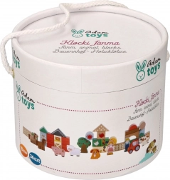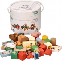 Lesene kocke v tem kompletu prinašajo veliko veselja in učenja za otroke od 18 mesecev dalje. S pomočjo kock lahko otroci raziskujejo in ustvarjajo lastne kmetijske zgodbe, kar spodbuja njihovo domišljijo in kreativnost.