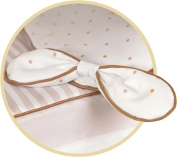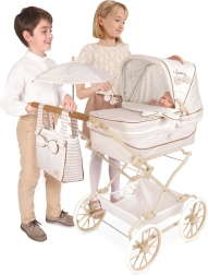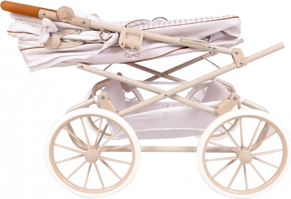 Praktične podrobnosti, kot so zložljiva strešica, odlagalna košara, vzmetno guganje in snemljiva prevleka košare, zagotavljajo udobje na vsakem sprehodu s punčko. Bogata oprema vključuje sončnik (Ø 50 cm), vzmetnico in odejico ter okrasno torbo, usklajeno s kolekcijo.