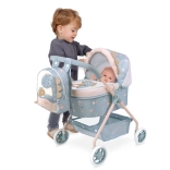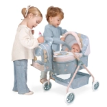 Praktična spodnja košara sprejme vse potrebščine za punčko, mehka vzmetnica pa zagotavlja njeno udobje med vožnjo.