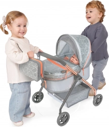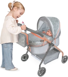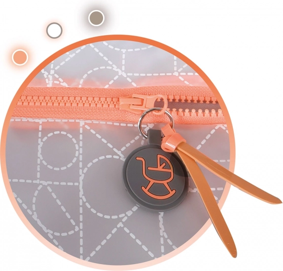 Odstranljiva torba na zadrgo, prevleka košare s prozornim žepom, mehka vzmetnica in spodnji odlagalni prostor – vse za udobno vožnjo punčk.