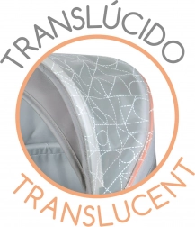 Kombinacija kakovostnih tkanin in PVC z natisom ustvarja učinek steklenih površin. Medeni poudarki vozičku dodajo eleganten, urban videz.