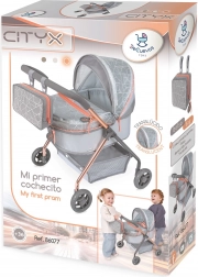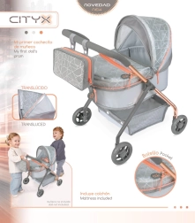 Kolekcija CITY X 2024 združuje vrhunske tkanine z dizajnerskim PVC z natisom, ki ustvarja učinek »steklenih« površin. Elegantno sivo‑srebrno izvedbo dopolnjujejo trendovski medeni elementi, ki poudarjajo lahkotnost in zračnost vozička. Zaradi nizkega ročaja in stabilnega podvozja je voziček odličen za čisto majhne gospodične in je popoln za igro vlog ter razvoj domišljije.
