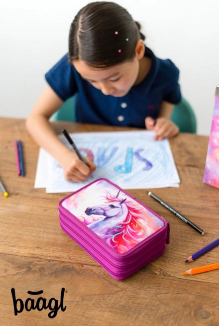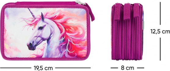 Slogovna kombinacija fantastičnega motiva samoroga in praktičnega dizajna naredi ta etui popolno izbiro za vsakega šolarja.
