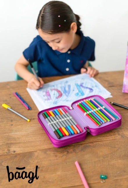 Izboljšajte svojo šolsko opremo s tronadstropnim etuijem, ki ponuja dovolj prostora za vse vaše barvice, flomastre in druge šolske potrebščine. Etui je opremljen z elastikami prilagojenimi tudi močnejšim pisarniškim potrebščinam, kar omogoča organizacijo in enostaven dostop.