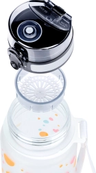Ta lahka in trpežna steklenica iz certificiranega tritana je zasnovana za vsakodnevno hidracijo. Zahvaljujoč zaklepnemu pokrovčku vam ni treba skrbeti za prelivanje v nahrbtniku, medtem ko mehanizem flip-top omogoča hitro in udobno pitje s samo eno roko. Notranje sito boste cenili za aromatizirano vodo s sadjem ali za razsute čaje.