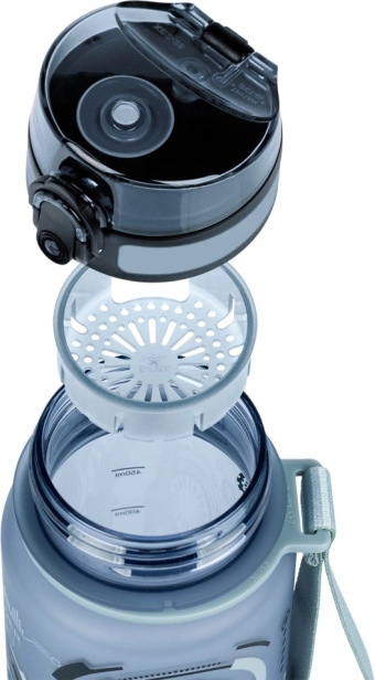 Opremljena je s praktičnim zaklepnim pokrovčkom in sitom, kar omogoča uporabo za različne vrste pijač, vključno s sadnimi limonadami ali čaji. Zaradi pritrjenega traku je nošenje plastenke zelo udobno. Plastenka aktivno prispeva k varovanju okolja z zmanjšanjem plastičnih odpadkov.