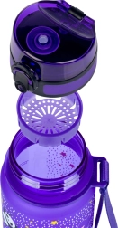 Zaklepni pokrov preprečuje iztekanje pijače in zagotavlja enostavno uporabo. Pašček omogoča udobno prenašanje v roki, kar jo naredi idealno za šolo, izlete ali športne aktivnosti. Z uporabo te steklenice učinkovito zmanjšujete plastične odpadke iz enkratnih PET steklenic in prispevate k varstvu okolja.