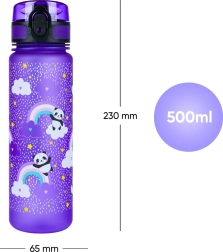 Elegantna tritanova steklenica s kapaciteto 500 ml vas navdušuje ne samo s svojo zasnovo, ampak tudi s svojo funkcionalnostjo. Izdelana iz certificiranega tritana, ne oddaja neprijetnih vonjav in ne vsebuje zdravju škodljivih snovi kot so BPA, PVC in ftalati. Zahvaljujoč vključenemu cedilu, lahko steklenico uporabite za limonade z sadjem ali čaje, medtem ko je material primeren tudi za vroče pijače. Elegantni motiv pandin in mavrični motiv naredi to steklenico odličnim dodatkom za otroke.
