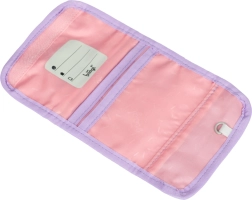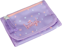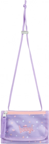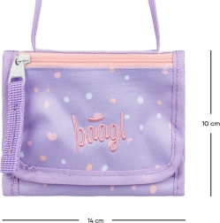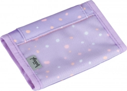 Premišljena razdelitev z zapiranjem na ježka ter notranjim žepkom na zadrgo za kovance ohranja gotovino, kartice in ključe pregledno in na varnem. Slogovna vijolična zasnova s pikami in diskretnim logotipom daje denarnici moderen videz, ki se odlično poda k šolski in prostočasni opremi.