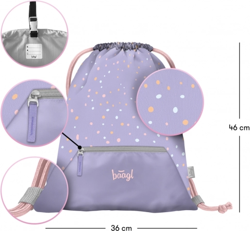 Stilska in funkcionalna vrečka Baagl Ljubkovci je odlična izbira za vsakodnevno nošenje obutve, športne opreme ali krožkov. Trpežen in pralni material se preprosto vzdržuje, spodnji žep na zadrgo pa varno shrani drobnarije, ključe ali robčke.