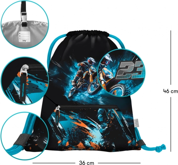 Vrečka BAAGL Motor združuje slogoven športni dizajn z največjo funkcionalnostjo. Izdelana je iz čvrstega, enostavno čistljivega materiala, ki prenese vsakodnevno uporabo pri treningu, v šoli in na poti. Zatezne vrvice hkrati služijo kot naramni trakovi, zato lahko vrečko udobno nosite na hrbtu.