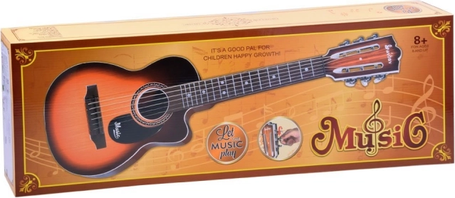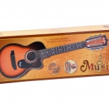 Ta otroška kitara združuje privlačen videz lesa z odporno plastično konstrukcijo, zato je lahka, enostavna za držanje in varna za vsakodnevno igranje. S šestimi kovinskimi strunami ponuja realističen zvok in pomaga otrokom razvijati ritem ter posluh.