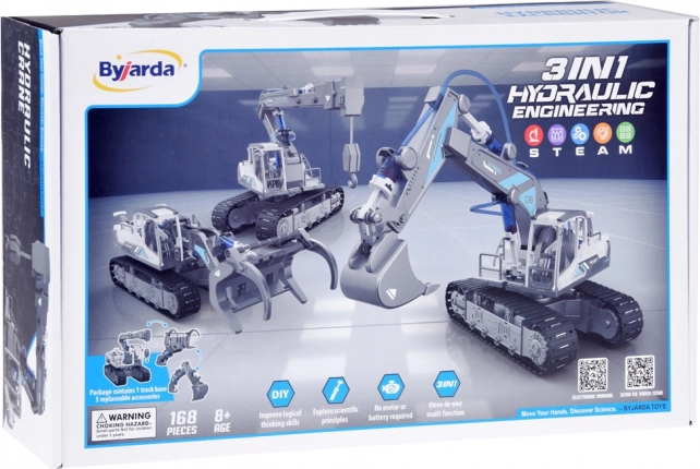 Sestavite tri različne gradbene stroje in jih menjajte glede na razpoloženje. En set, veliko možnosti igre in učenja.