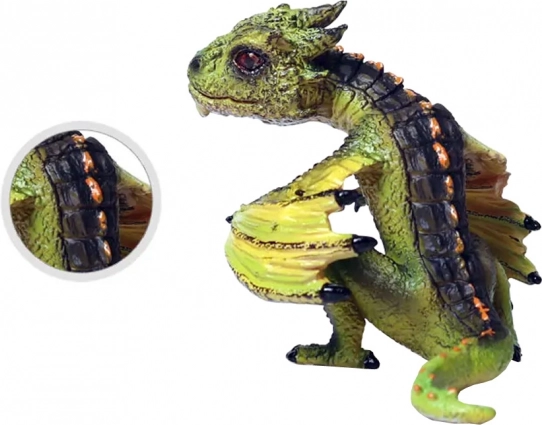 Oživite svet domišljije s podrobno izdelano figurico zelenega zmaja. Realistična tekstura lusk, kontrastna rumena krila in izrazite podrobnosti jo naredijo privlačen kos tako za igro kot za razstavo. Trpežen material in ročna poslikava zagotavljata dolgo življenjsko dobo in edinstven videz vsakega kosa.