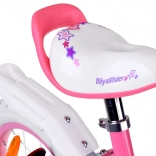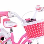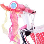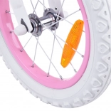 Rožnato-bela podoba s košarico in cofki na krmilu motivira otroke k vožnji in jih na igriv način uči ravnotežja.