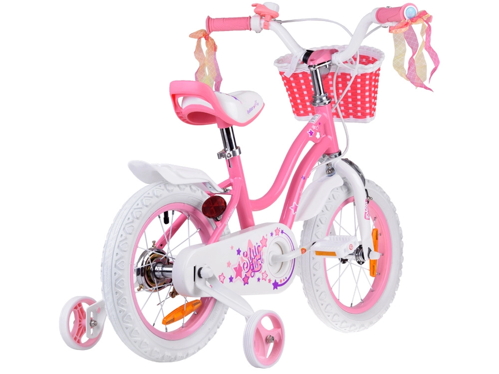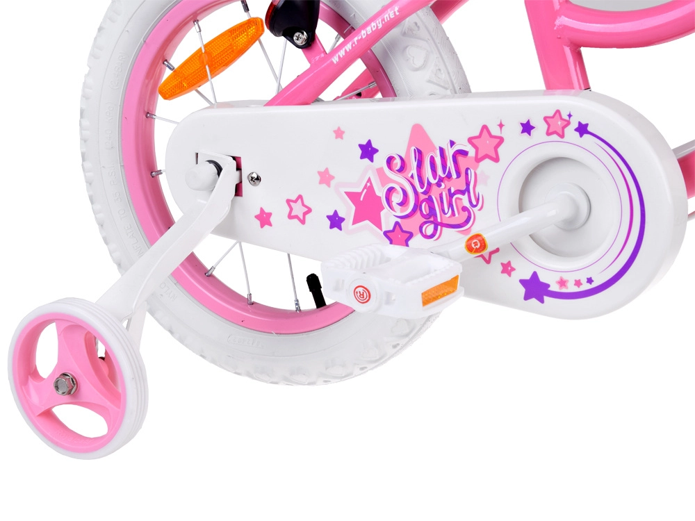 Otroško kolo RoyalBaby STAR GIRL 14" združuje varnost, udobje in veselje do vožnje. Jeklen okvir, napihljive gumijaste pnevmatike in kakovostni ležaji zagotavljajo gladko in stabilno vožnjo, medtem ko ergonomsko krmilo z hišico za zvonec, košarico in cofki razveseli vsakega otroka. Popoln pokrov verige ščiti pred umazanijo in poškodbami.