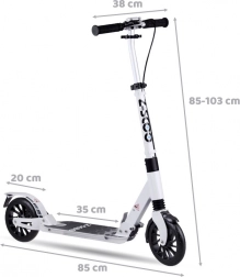 Ta robusten zložljiv aluminijast skiro je ustvarjen za mesto. Nastavljivo krmilo v razponu 83–103 cm, ergonomski gumijasti ročaji in protidrsna deska 35 × 15 cm zagotavljajo udobje in zanesljiv oprijem med vožnjo. Zaradi preprostega sistema zlaganja ga v hipu prenesete na rami in shranite tudi v majhnem prostoru.