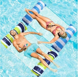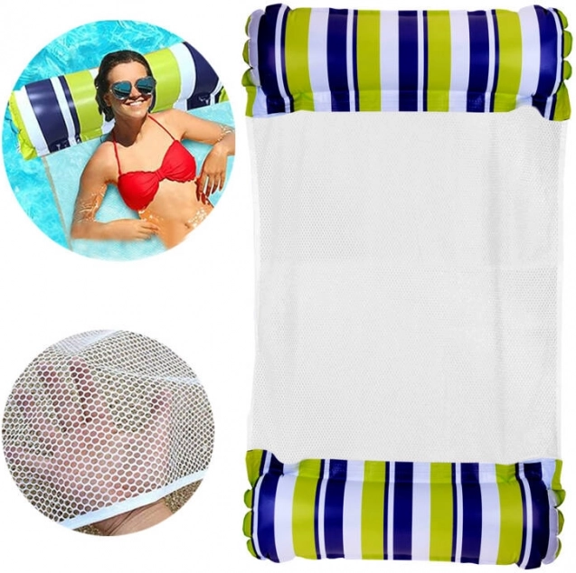 Čudovita vodna viseča mreža ponuja udobje in sprostitev neposredno na vodni gladini. Zaradi posebne zasnove omogoča lahkotno plavanje na vodi, medtem ko ste delno potopljeni, kar nudi prijetno osvežitev v vročih poletnih dneh.