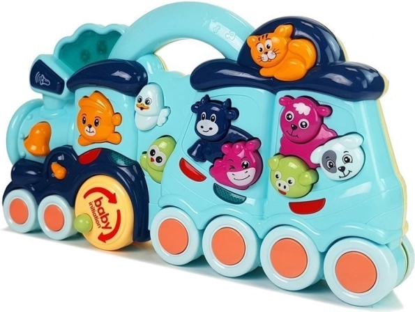 Ta barvita otroška lokomotiva je zasnovana tako, da podpira naravni razvoj otroka že od 12 mesecev dalje. S pritiskom na posamezne gumbe zazvenijo različni živalski zvoki (mačka, krava, ovca, kuža, pujsek, konjiček in ptice), kar pomaga pri razlikovanju zvokov, barv in oblik ter spodbuja domišljijo in čutno zaznavanje.