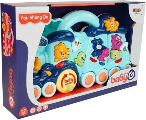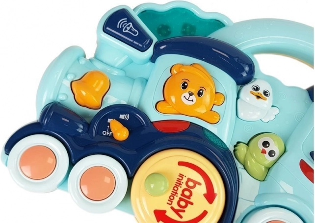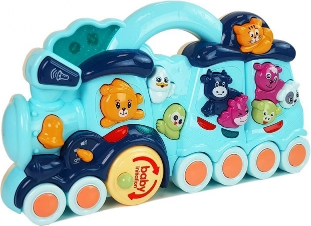 Interaktivna modra lokomotiva za otroke z živalskimi zvoki in svetlobnimi učinki