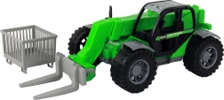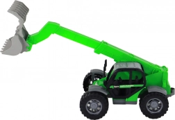 V paketu so trije enostavno zamenljivi nastavki: vilice za bale in material, transportni koš ter prijemalnik za les ali veje. Frikcijski pogon omogoča preprosto speljevanje – le rahlo potisnite in se odpeljite. Igra s gradbeno in kmetijsko mehanizacijo spodbuja fino motoriko, koordinacijo in kreativno razmišljanje.