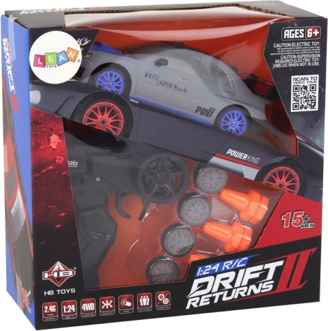 Uživajte v dinamični vožnji z RC športnim avtom v merilu 1:24, ki doseže hitrost do 15 km/h. Zahvaljujoč 2,4 GHz upravljanju, 4-smernemu krmiljenju in dvema kompletoma zamenljivih koles (gladka za drift in z dezenom za oprijem) obvlada natančne manevre in efektno drifta. V paketu najdete tudi trenažne stožce za ustvarjanje lastnih prog.