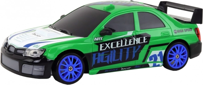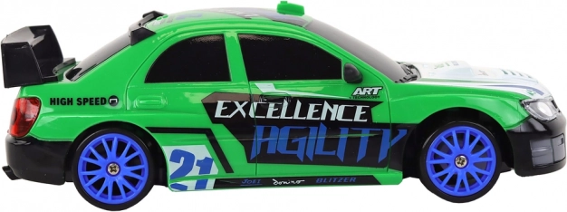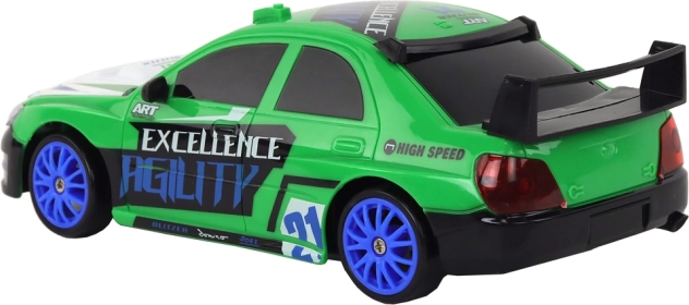 Naš daljinsko voden športni avtomobil je idealna izbira za ljubitelje hitrostnih dirk in driftanja. S svojim elegantnim zelenim dizajnom in zamenljivimi kolesi, ki vključujejo komplet z grobim profilom za boljšo stabilnost ter gladka kolesa za atraktiven drift, je pripravljen na vsak izziv.