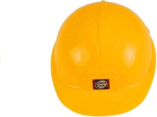 Del kompleta je lahka plastična čelada kot stilski dodatek za male graditelje. Spodbuja domišljijsko igro in otrokom nudi avtentično izkušnjo pri ustvarjanju.