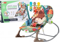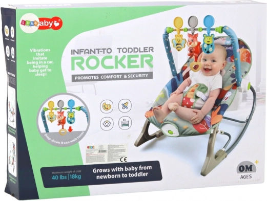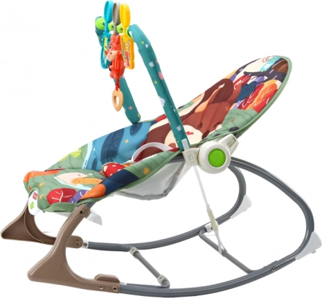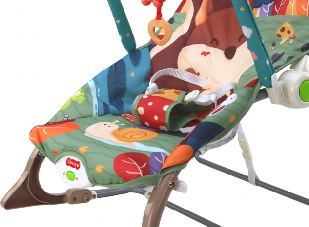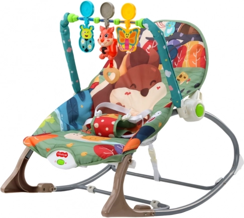 Praktični otroški gugalnik in ležalnik 2v1 združuje pomirjujoče vibracije, varne tritočkovne pasove in zabavni lok z igračkami. Vesel gozdni motiv z lisičko, pikapolonico in metuljem spodbuja razvoj čutov in motorike, medtem ko mehki materiali in protizdrsna konstrukcija zagotavljajo udobje in varnost že od prvih mesecev.