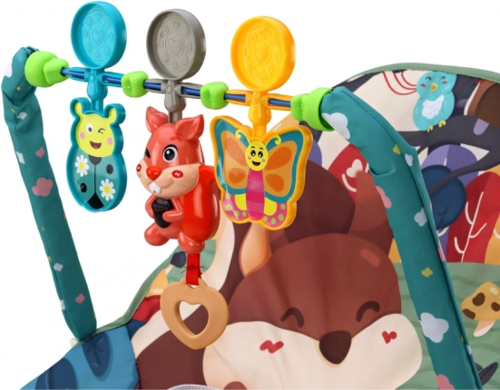 Viseče igračke z lisičko, pikapolonico in metuljem spodbujajo prijemanje in koordinacijo. Z vlekom za srček pri lisički zaženete veselo melodijo.