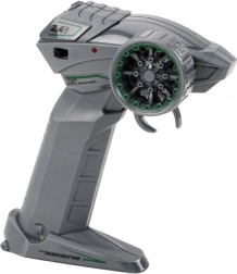 Ergonomski pištolski oddajnik z natančnim krmiljenjem kolesa in sprožilcem za gladko vožnjo. Stabilen signal omogoča vožnjo več modelov hkrati.