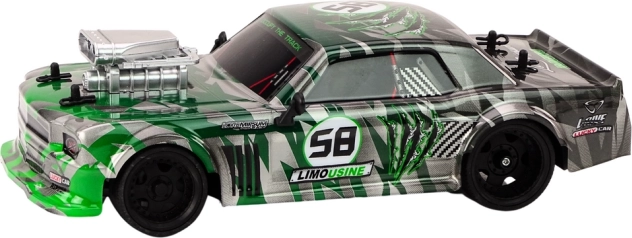 Stilsko zeleno RC vozilo v merilu 1:16 ponuja pristno vozno izkušnjo za male in velike ljubitelje hitrosti. Zahvaljujoč gumijastim pnevmatikam obvlada gladke podlage in zahtevnejši teren ter omogoča učen drift. Ergonomski oddajnik 2,4 GHz zagotavlja stabilno povezavo brez motenj in natančno krmiljenje.